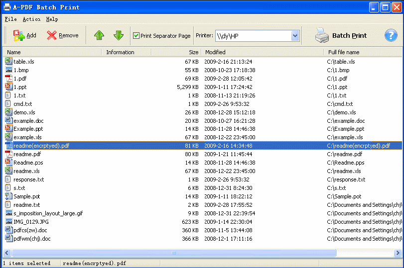 PDF Batch Print可以成批的將doc,xls,ppt等文檔列印成Adobe的PDF文檔。