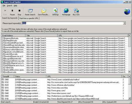 Super Email Spider能夠使用web快速可靠的建立電子郵件列表,它能夠根據指定的關鍵