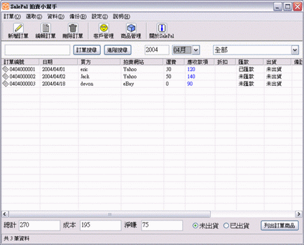 可以記錄不同拍賣網站的訂單及客戶資料