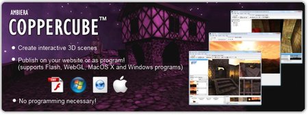 Coppercube 是一種創建互動式 3D 場景的簡單工具 .可製作從最簡單三維全景到